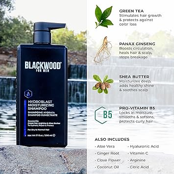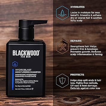 - ADVANCED RESTORATION & PROTECTION: Enriched with Shea Butter & Pro-Vitamin B5, Blackwood For Men's shampoo deeply moisturizes roots, softens & strengthens hair, and fights split ends, breakage, and hair loss!
