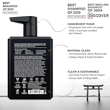 - JAPANESE ROOTED: Blackwood For Men's shampoo features natural Botanical Boosts from Japan, like Green Tea & Clove Flower to balance excess oil, nourish the scalp & promote healthy hair growth. Leave your locks looking fuller & more voluminous!
