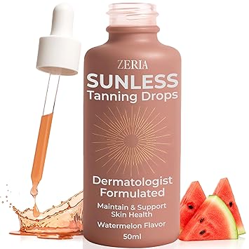 - Edible Self Tanning Drops For Face & Body - Zeria tanning drops offer a mess-free, drinkable alternative to traditional lotions or sprays. Add these bronzing drops to water or juice daily for a gradual, natural tan without sun exposure or streaks.