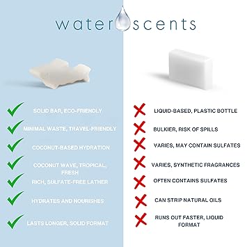 - Tropical Coconut Scent for Hair and Body - Indulge in the refreshing aroma of Coconut Wave while cleansing from head to toe. This 2-in-1 solid shampoo and body wash bar leaves your skin feeling soft and your hair smooth, with a clean, beachy scent that lasts.