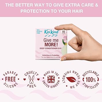 - THE BEST OF BRITISH SUSTAINABLE BEAUTY. IT'S THE BETTER WAY TO BEAUTIFUL HAIR : Better for hair & scalp, Better for you, Better for our planet. Elevate your haircare routine with KinKind's conditioner bars for hair. KinKind is plastic-free, paraben-free, vegan-friendly, cruelty-free, and handcrafted in the UK.