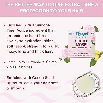 KinKind Give me MORE! Deep Conditioner Bar. Bar Conditioner for Hair - Perfect for Damaged, Frizzy & Curly Hair. Vegan & Cruelty Free. Up to 50 Washes.