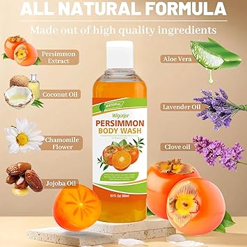 - POWERFUL ODOR ELIMINATION: Wigarjur persimmon body wash harnesses the natural deodorizing power of persimmon extract and tea tree oil to neutralize stubborn odors, including old people smell, smelly feet, and underarm odor. Our persimmon soap for old people smell delivers deep deodorization, leaving skin fresh and confidence-boosting all day