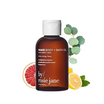 By Rosie Jane Wake Bath & Body Oil - Nourishing Body & Bath Oil to Leave Skin Soft, Smooth & Glowing - Enriched with Eucalyptus, Grapefruit & Lemon - Brightens and Boosts Collagen (125ml)