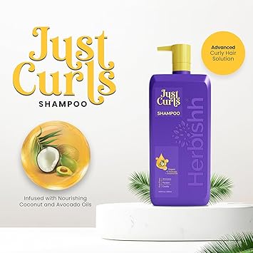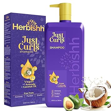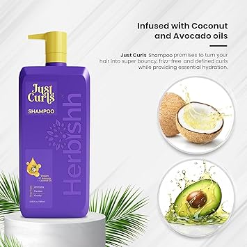 Herbishh Just Curls Shampoo For Curly Hair With Coconut Oil (16.91 Fl Oz), Hydrating & Moisturizing Formula For Wavy, Coily, Curly Hair, Detangling, Vegan Curl Enhancing Shampoo Para Cabello Rizado