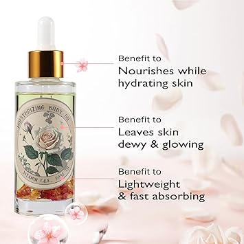 - Experience Skin Rejuvenation: Our body oil is lightweight and non-greasy. Enriched with Rose Extract, it offers nourishment and skin firming. Suitable for both women and men, it is an essential dry body oil for various skincare requirements, ranging from moisturizing to enhancing the skin