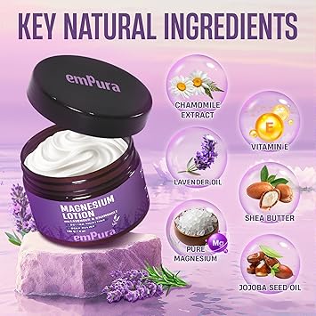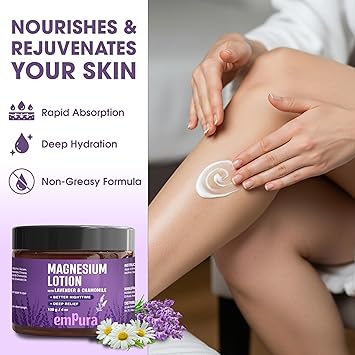 Lavender Magnesium Body Lotion, Better Nighttime Magnesium Cream - For Arms, Feet & Muscle Discomfort - Relaxing, Soothing & Moisturizing with Chamomile Extract, Shea Butter & Jojoba Oil (4oz)