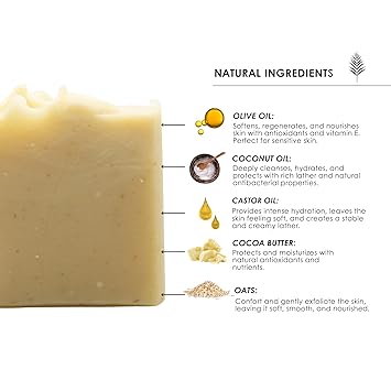 Natural Artisan Soap for Men and Women | Vegan, Handmade Soap Bars for Bath and Body | Non-Toxic Moisturizing Soaps for Dry & Sensitive Skin | 4.23oz (COMFORT (Oatmeal))