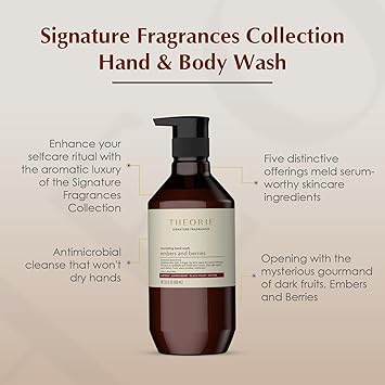 Theorie Embers and Berries Hand and Body Wash - Signature Fragrances Collection - Vegan, Luxury Soap with Notes of Saffron, Juniper Berry, Black Violet & Vetiver, Pump Bottle 400mL