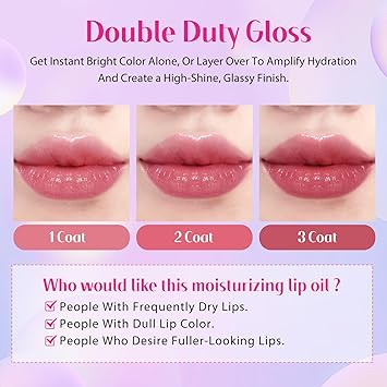- 【Buildable Lip Look】This lip oil set can be worn alone for instant vibrant color payoff or layered over your favorite lip stain to boost hydration and glass-like shine. Enhance any lip look with buildable lip gloss luminosity while locking in moisture for irresistibly plump, glossy lips.
