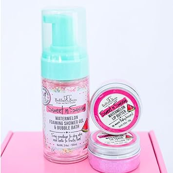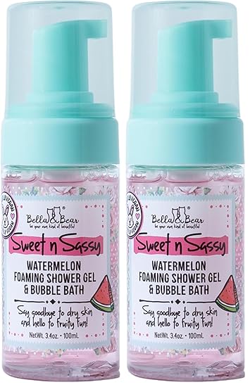 Bella & Bear Sweet 'n' Sassy Watermelon Foaming Shower Gel & Bubble Bath with Pump, Travel Size