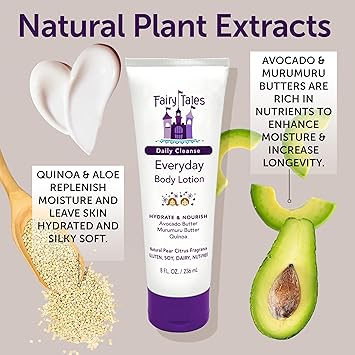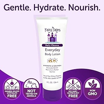 Fairy Tales Daily Cleanse Everyday Hydrating Kids Lotion with Aloe, Nourishing Body Lotion for Girls & Boys, Hydrate Dry and Sensitive Skin with Avocado and Murumuru Butter - 8 oz.