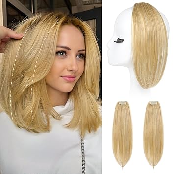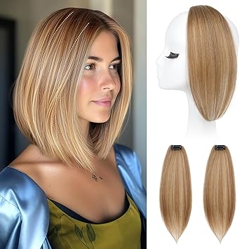 REECHO Clip in Hair Volumizer, 2PCS 12 inch Short Thick Clip in Hairpieces Adding Extra Volume Hair Extensions for Women - Medium Blonde