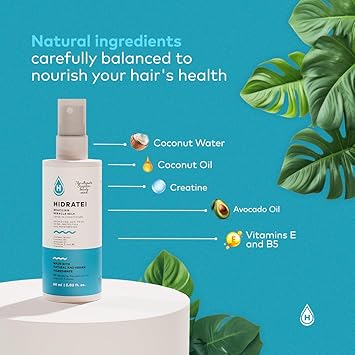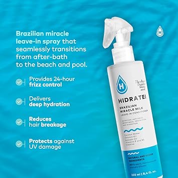 Hidratei Brazilian Healthy Leave In Conditioner | Detangler Spray | Anti-Frizz Spray | 24+ Hour Protection from UV, Heat, & Frizz | Reduces Breakage | Vegan Hair Treatment for All Hair Types 8.4 Oz