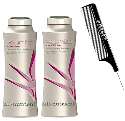 All-Nutrient VOLUMIZE Shampoo & Conditioner DUO SET, For Added Hair Volume & Dimension (w/Sleek Comb) UV+ Color Protection, 100% Vegan (3.4 oz + 3.4 oz TRAVEL DUO KIT)