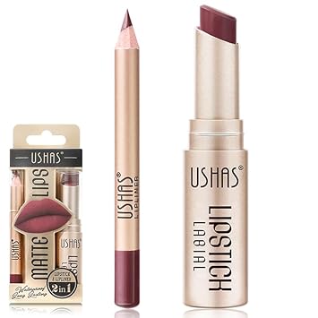 USHAS 2 in 1 Waterproof Lipstick and Lip Liner Combo Set - Long Lasting Matte Lipstick Pen with Lip Liner Set Makeup Kits (S9, Pack of 1)