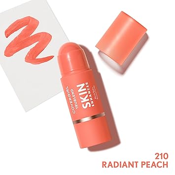 CoverGirl Trublend Skin Enhancer Blush Balm Stick, 210 Radiant Peach, Vegan Formula, Easy to Use, Glides on Effortlessly, Non-Greasy, Doesn't Crease, 0.21oz