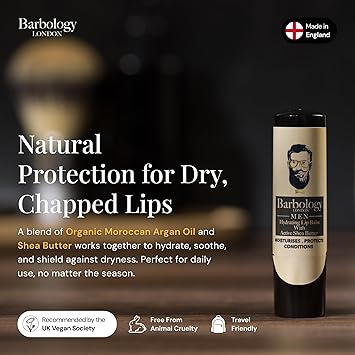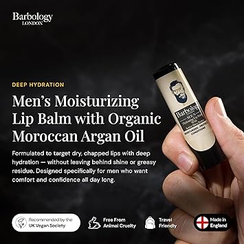 Men's Moisturizing Lip Balm for Chapped Lips with Organic Moroccan Argan Oil, Lightweight Formula Leaves Zero Residue, 0.17oz (Pack of 1)