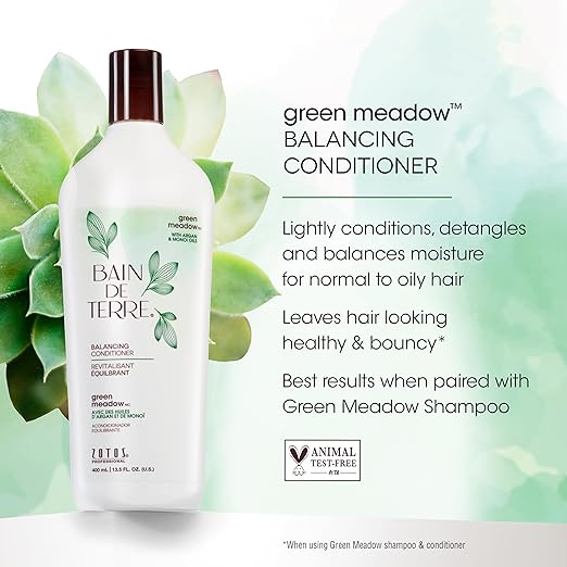 Bain de Terre Green Meadow Balancing Conditioner, Gentle Moisture Balance for Soft, Silky & Bouncy Hair with Argan & Monoi Oils, Paraben-free, Color-Safe, Vegan (2 sizes)
