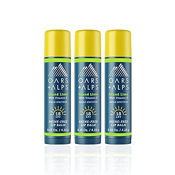 Oars + Alps Lip Suncreen, SPF 18 Lip Balm, Shine Free Sunscreen for Lips, Infused with Vitamin E & Shea Butter, Water & Sweat Resistant, Moisturizing, Hydrating, Island Lime Scent, 3pk