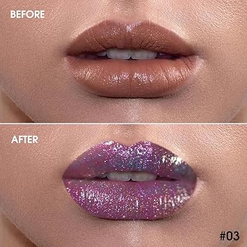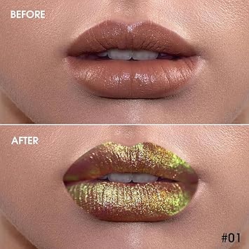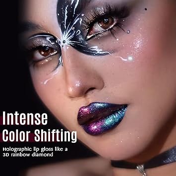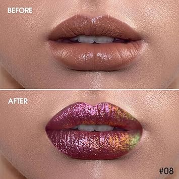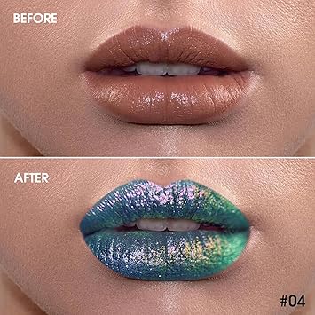 - 【Sparkling Chameleon Lipstick】: Highly pigmented bold duo-chrome color lips looking,multi-dimensional finish,full-bodied, shimmer soft ,not easy to oxidize, dim, and fade. Holographic lip gloss is changing different colors with light refraction, like a 3D rainbow diamond, dreamy, dazzling, and personalized. Rejects the ordinary for a charming look.
