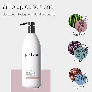 Privé Amp Up Volumizing Conditioner for Fine Hair - Sulfate Free Hair Conditioner for Men & Women - Vegan & Color-Safe Formula with Bamboo, Green Tea & Acai - Provides Weightless Moisture (12 oz)