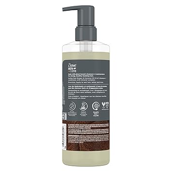 Begin your day with Dove! Dove Men Care 2-in-1 Shampoo and Conditioner for Hydrated Hair with nourishing, plant-based cleansers and moisturizers is the answer when you want clean ingredients without sacrificing performance. This sulfate-free men’s shampoo and conditioner with mineral complex cleans and nourishes hair follicles, leaving you with hydrated, healthier-looking hair. Start your day off right with the invigorating scent of ginger and coconut oil in this powerful 2-in-1 shampoo and conditioner. Our carefully crafted formula is 92% naturally derived, has effective plant-based cleansers, and is vegan & cruelty free. Made in a 100% recycled & recyclable plastic bottle. This naturally derived 2-in-1 shampoo and conditioner for men goes well with the Dove styling line: Dove Men Care Molding Paste for relaxed & flexible hair with a natural look, Polishing Pomade for soft & smooth hair with a sleek and polished finish, Taming Gel for all-day hold and shine for well-defined hair, or Shaping Putty for thick & full hair with a conditioned look. Use it with the entire line of Dove Men Care natural products for the perfect grooming routine, such as Dove Men Lime Cedarwood Body & Face Wash and Dove Men Lime Cedarwood Dry Spray Antiperspirant.