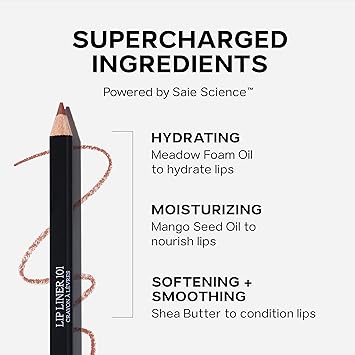 - Powered by Saie Science, Lip Liner 101’s formula is supercharged with Shea Butter, Jojoba Oil and Meadowfoam Oil for a comfortable, nourishing essential. Our creamy lip liner is vegan, cruelty free and safe for sensitive skin.