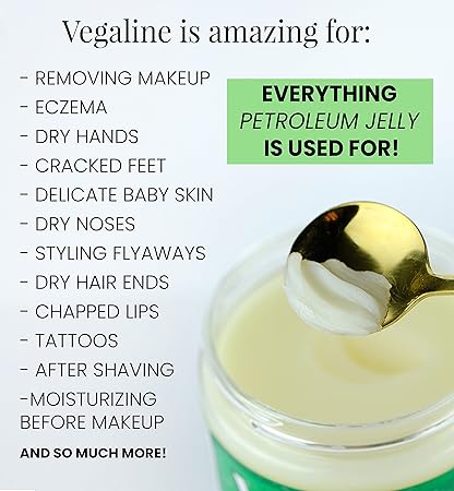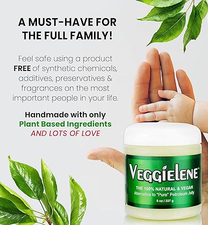 - MULTI-PURPOSE SKIN BALM - Formerly Vegaline, Veggielene is your all-in-one head-to-toe solution for sensitive skin! Made with gentle, nourishing botanical ingredients, this versatile balm works wonders for dry hands, cracked feet, chapped lips, dehydrated hair, delicate bottoms, makeup removal, sniffly noses, and more—everything you’d typically use “pure” petroleum jelly for, but without harsh chemicals or hidden toxins. Keep Veggielene in your home cabinet for healthier, softer, and happier-looking skin every day.