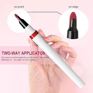 - 【Precision Brush for Effortless Application】Unleash your inner artist with the applicator—a fine-point brush for crisp lip lining and a slanted edge for seamless full-lip coverage. The ergonomic design glides smoothly, allowing you to contour, blend, and build color with salon-level precision in seconds. Perfect for both beginners and makeup enthusiasts, it eliminates messy smudges and uneven patches, ensuring a polished finish every time.