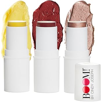 Boomstick Trio ® Color 3 Pack Cream Blush Makeup, Color Blush Stick, Highlighter Stick & Moisturizer for Cheeks, Eyes & Lips, Blendable Vegan Boom Sticks by Cindy Joseph for Older Women, BOOM Beauty