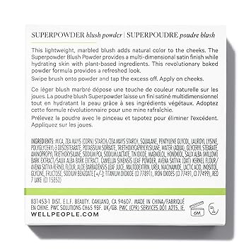 What it is: A lightweight baked powder blush that adds a pop of color to cheeks while hydrating skin with plant-powdered ingredients. Why we love it: Lightweight baked blush formula hydrates skin Gives cheeks a natural flush of color and luminosity with a semi-matte finish Helps control excess oil and makeup creasing for a smooth application Infused with plant-based ingredients like Olive Derived Squalane, Organic Corn Starch, and Magnolia Bark Talc-free Available in 4 radiant shades Add a luminous pop of color to your cheeks while hydrating your skin. This lightweight multi-dimensional blush gives your skin a natural flush and healthy-looking glow with a semi-matte finish. It’s formulated with a plant-powered combo of Olive Derived Squalane, Organic Corn Starch and Magnolia Bark. Plant-powered ingredients: Olive Derived Squalane Organic Corn Starch Magnolia Bark Choose well, play clean. This makeup product is dermatologist-developed, vegan, and cruelty-free. Well People is both PETA Cruelty Free and Leaping Bunny certified. This product is made in a Fair-Trade Certified facility. Well People products are pregnancy friendly.