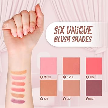 - SIX VERSATILE SHADES: Includes six richly pigmented blush colors ranging from soft neutrals to vibrant hues for a customizable glow.