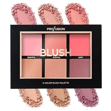Profusion Cosmetics 6 Color Blush Palette - Buildable Matte & Shimmer Shades for Face & Cheeks, Blendable Pigments for All Skin Tones, Vegan & Cruelty-Free Makeup