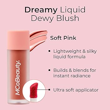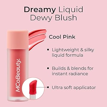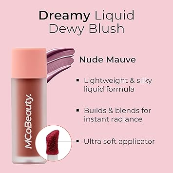 MCoBeauty - Dream Liquid Dewy Blush for Cheeks - Nude Mauve Radiant Flush for Fresh Shade - Fresh Glowing Cheeks - 4.6ml - Vegan, Cruelty Free - Face Makeup, Blush Liquid