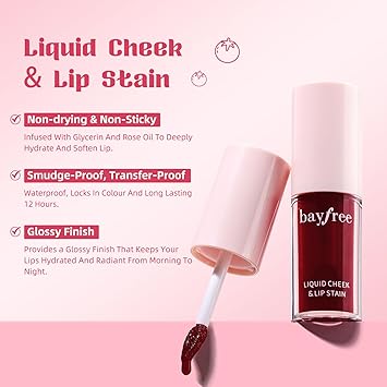 bayfree Liquid Cheek & Lip Stain, Korean Lip Tint with Moisturizing & Weightless, Non-Sticky, Long-Lasting, Kiss-proof, All Long-wearing, Vegan Makeup (Rose Cherry)