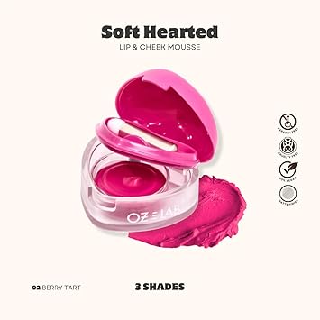 Soft Hearted Lip and Cheek Mousse - Berry Tart 2-in-1 Vegan Cream Blush & Lip Tint Heart-Shaped Packaging with Mini Brush 0.12 FL.OZ/3.5G,pack of 1