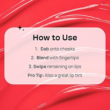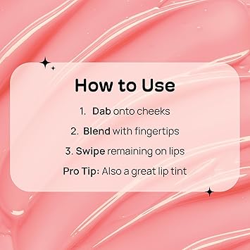 - How to Use: Dab onto cheeks and lightly blend with fingertips. Each shade is buildable; add more or less to achieve your desired color and saturation. Swipe the remaining formula onto lips to finish the look. Tip: Mix two shades for a more customized color.