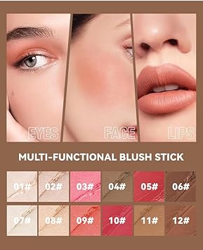 Natural Blush Stick for Cheeks & Lips - Creamy, Buildable, Vegan Makeup ,Long-Lasting, Easy Blend, Travel-Friendly (06)