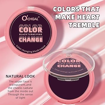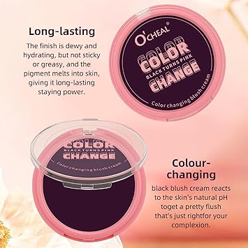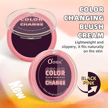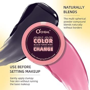 O'CHEAL Color-Changing Blush Powder | Black To Pink Cream Blush | Blendable, Longwear, Glowy Make Up | Makeup Blush For Eyes, Cheeks & Lips | Vegan & Cruelty-Free