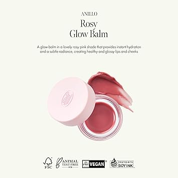 Rosy Glow Balm - Hydrating & Illuminating Multi-Use Balm | Dewy Glowy Finish, Nourishing Tint | Vegan, Cruelty-Free Korean Lip & Cheek Care | 0.5oz