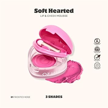 Soft Hearted Lip and Cheek Mousse - Frosted Rose 2-in-1 Vegan Cream Blush & Lip Tint Heart-Shaped Packaging with Mini Brush 0.12 FL.OZ/3.5G,pack of 1