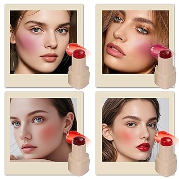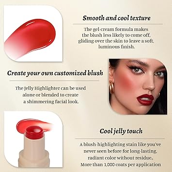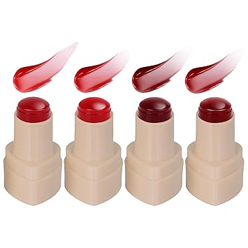 Jelly Lip Stain&Cheek Tint,Sheer Blush with Vegan Collagen+Aloe,4 Colors Fun Bouncy Jelly Lip Gloss for Girls,Moisturizing,Long-Lasting,Cute Stuff