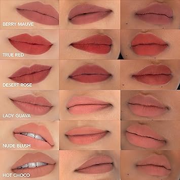 | 01 - Nude Blush, Lady Guava, Berry Mauve, Hot Choco, True Red, Desert Rose |