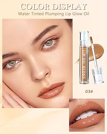 Hydrating Lip Tint Stain-1Pcs Tinted Plumping Lip Glow Oil, Moisturizing Water Lip Stain Makeup, Pigmented Non-Sticky Vegan Lip Gloss, Multi-Use Lip & Cheek Tint, Nude Glossy Finish, Cruelty Free-03#