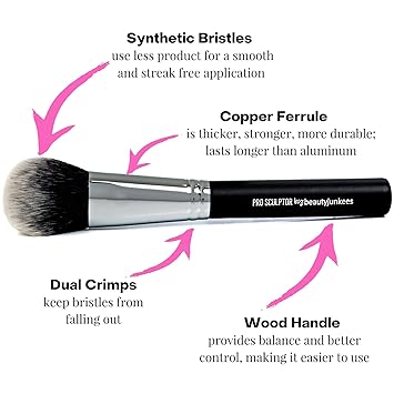 Contour Brush Bronzer Brush - Beauty Junkees Pro Sculptor Angled Makeup Brush, Cheek Hugging Soft Dome for Cheekbone Contouring, Sculpting, Blush, Cream, Powder, Liquid; Synthetic Vegan