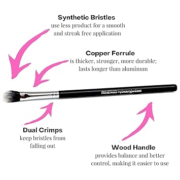 - Sculpting: narrow, dense bristles with dome shape for perfect application and blending; flat sculpting brushes apply a harsh line and do not blend.