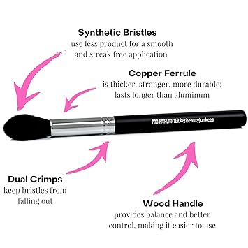 - Highlighter: soft bristles with a small taper point for applying highlighter to narrow facial features.
