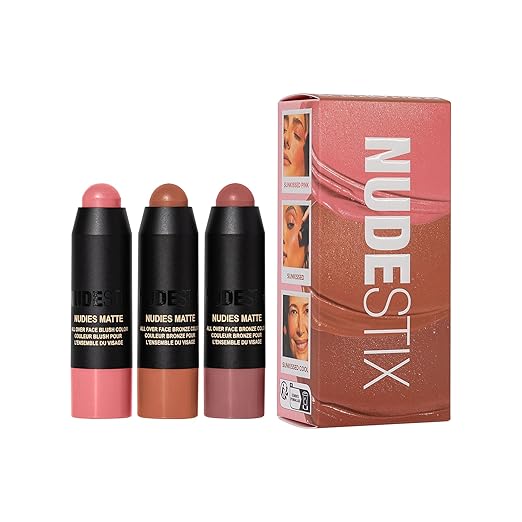 Nudestix Sunkissed Blush & Bronze 3-Piece Mini Kit - Matte Cream Makeup Sticks for Cheeks, Eyes & Lips | Includes Sunkissed Shade, Travel-Friendly & Vegan | Limited Edition Glow Set