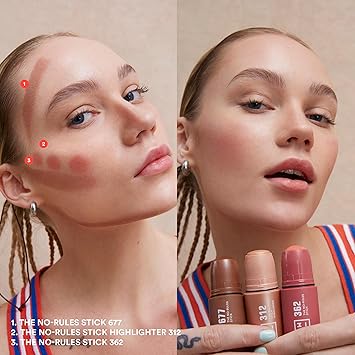 3INA MAKEUP - The No - Rules Stick Highlighter 312 - Rose Gold Tone Pen Highlighter - for Eyes Lips Cheeks - Highlighter Makeup Stick for Natural and Luminous Finish - Vegan - Cruelty Free